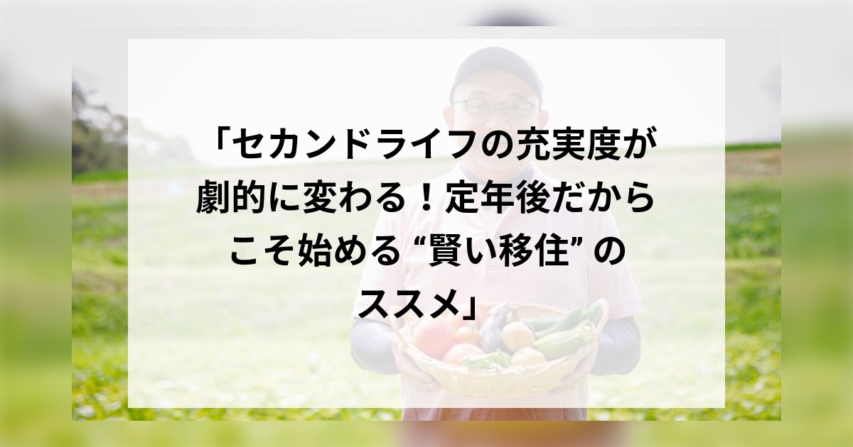 「セカンドライフの充実度が劇的に変わる!定年後だからこそ始める “賢い移住” のススメ」