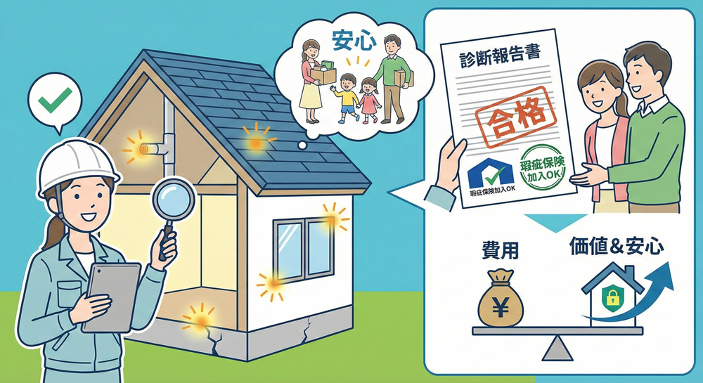 検査に合格すると、**「瑕疵保険」という保証制度に加入できる資格が得られます(※別途加入手続きが必要)。 この保険に入っている物件は、買主にとって「万が一の欠陥も保証される」だけでなく、「住宅ローン減税などの税制優遇が受けやすくなる」**という大きな金銭的メリットがあります。つまり、買主にとっても「お買い得な物件」になるのです。