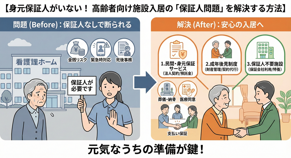 この記事では、施設側が保証人を求める「本当の理由」を理解した上で、家族がいなくても堂々と入居するための具体的な解決策を徹底解説します。