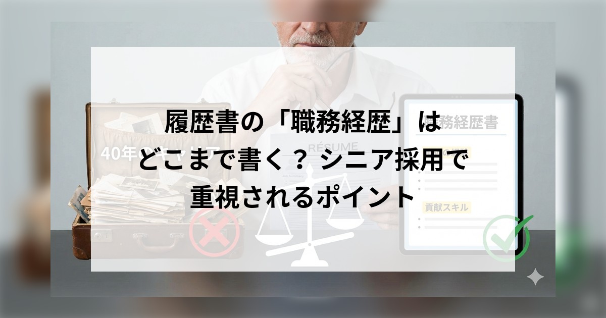 この記事では、膨大なキャリアをどのように整理し、どこを強調すれば採用担当者の心を掴めるのか、シニア採用に特化した「職務経歴書の書き方」を解説します。
