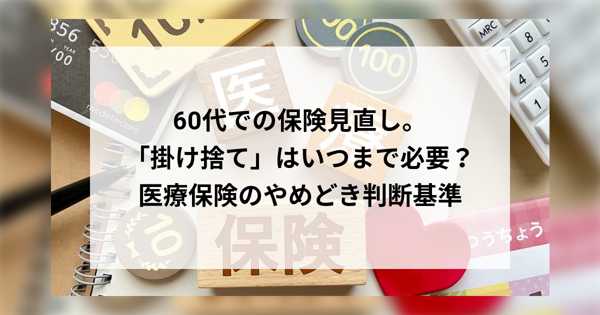 60代での保険見直し。「掛け捨て」はいつまで必要? 医療保険のやめどき判断基準
