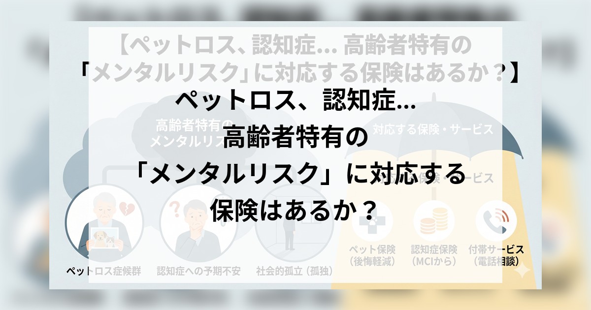 ペットロス、認知症... 高齢者特有の「メンタルリスク」に対応する保険はあるか?