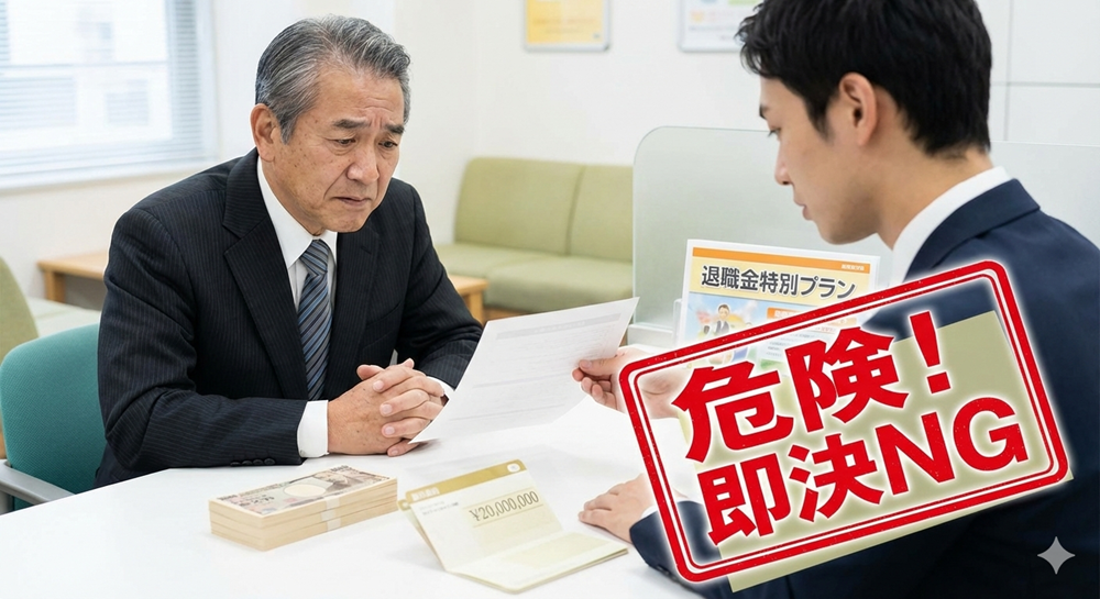 焦る必要はありません。 あなたの40年間の汗と涙の結晶である退職金。 他人(銀行)のためではなく、あなた自身の豊かな老後のために、慎重に守り抜いてください。