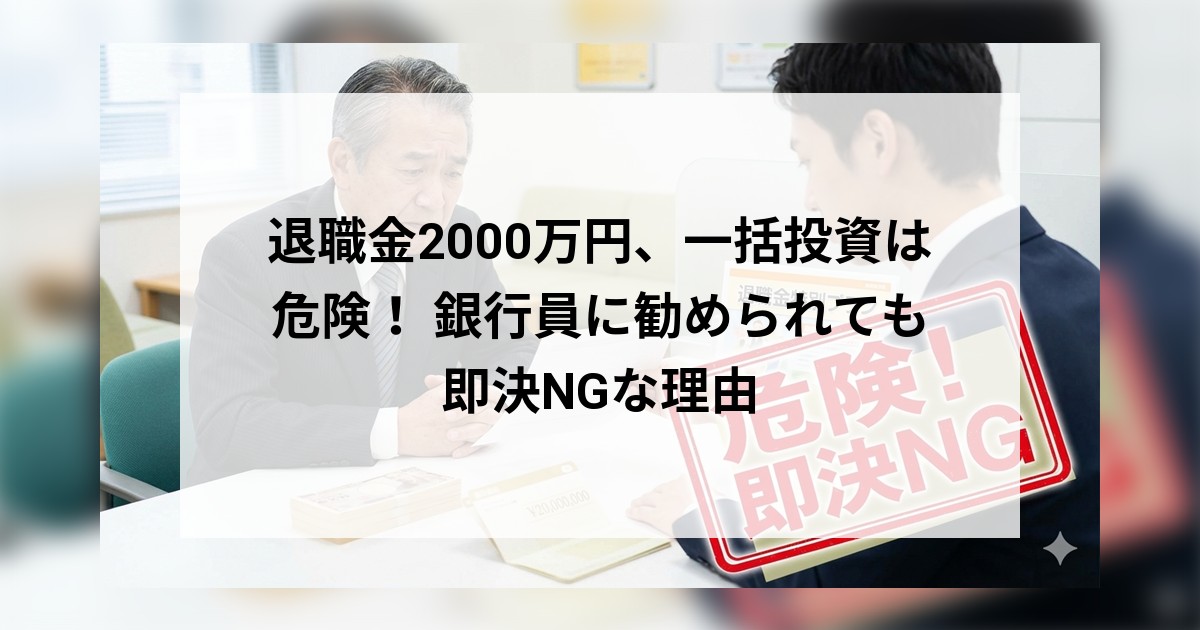 この記事では、退職金を受け取った直後の「魔の期間」に陥りやすい罠と、なぜ一括投資が危険なのか、その理由を元銀行員の視点も交えて解説します。
