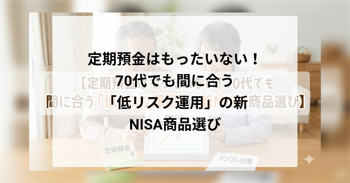 定期預金はもったいない! 70代でも間に合う「低リスク運用」の新NISA商品選び