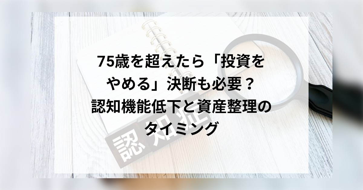 この記事では、加齢による認知機能の低下が資産運用に与えるリスクと、晩節を汚さないための「きれいな投資の辞め方・減らし方」について解説します。