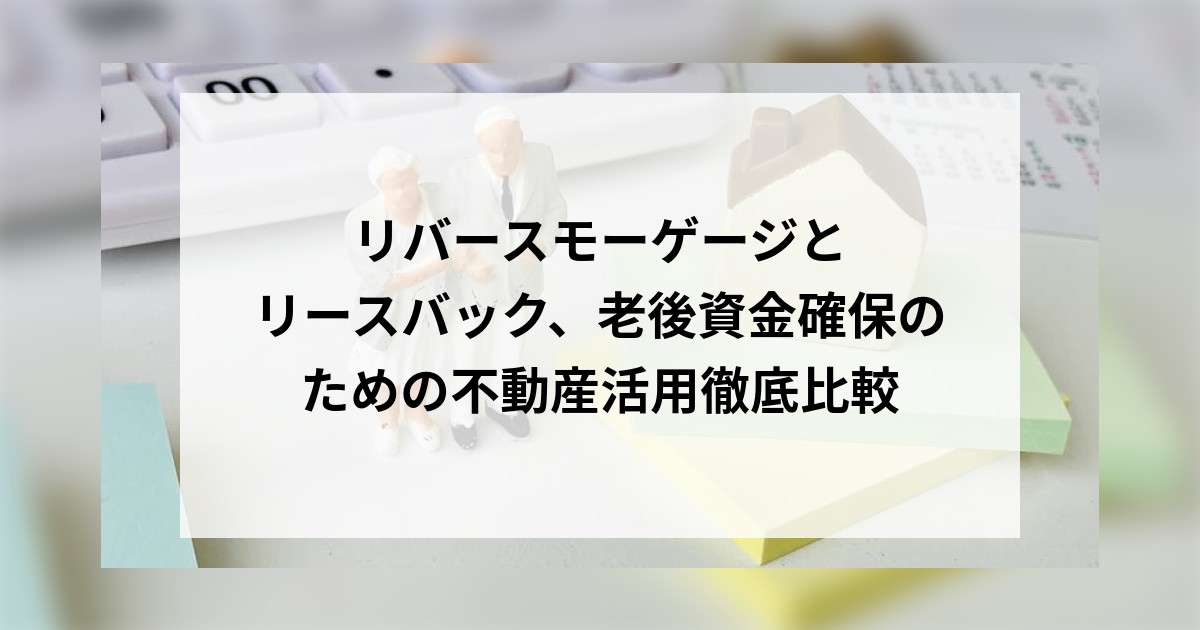 リバースモーゲージとリースバック、老後資金確保のための不動産活用徹底比較