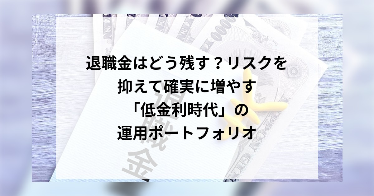 退職金はどう残す?リスクを抑えて確実に増やす「低金利時代」の運用ポートフォリオ