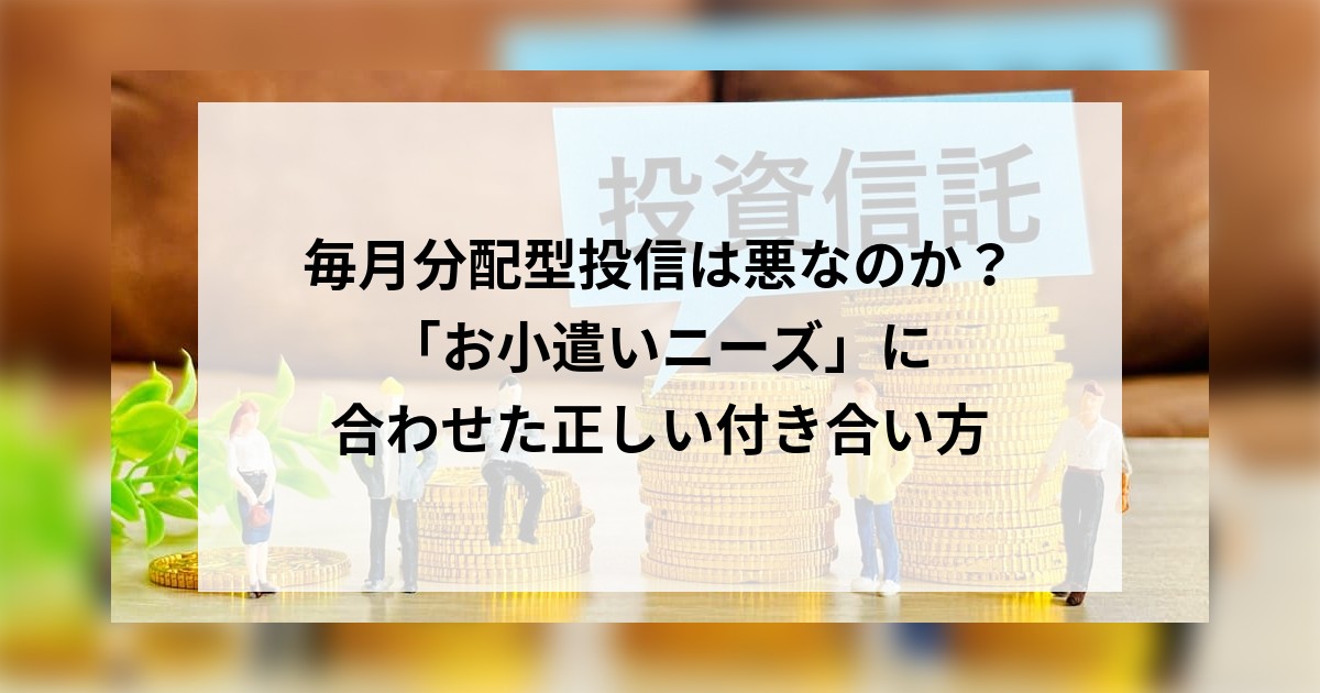 毎月分配型投信は悪なのか? 「お小遣いニーズ」に合わせた正しい付き合い方