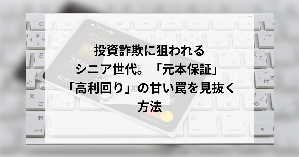 投資詐欺に狙われるシニア世代。「元本保証」「高利回り」の甘い罠を見抜く方法